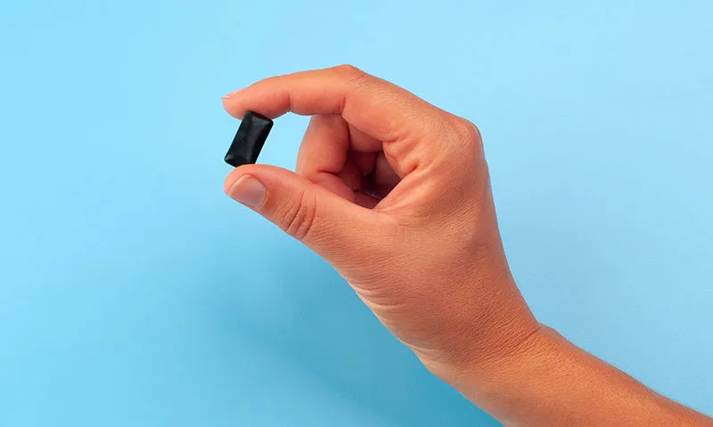 The gum also contains activated carbon to absorb discoloured particles – so you can chew your way to fresher breath and whiter teeth!