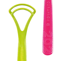 Our tongue scrapers – available in four colours – come in two different models: