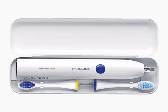 The Hydrosonic Easy comes with two brush heads: The “CHS 200 sensitive” and the “CHS 300 power”. And it’s compatible with all CURAPROX sonic toothbrush heads.